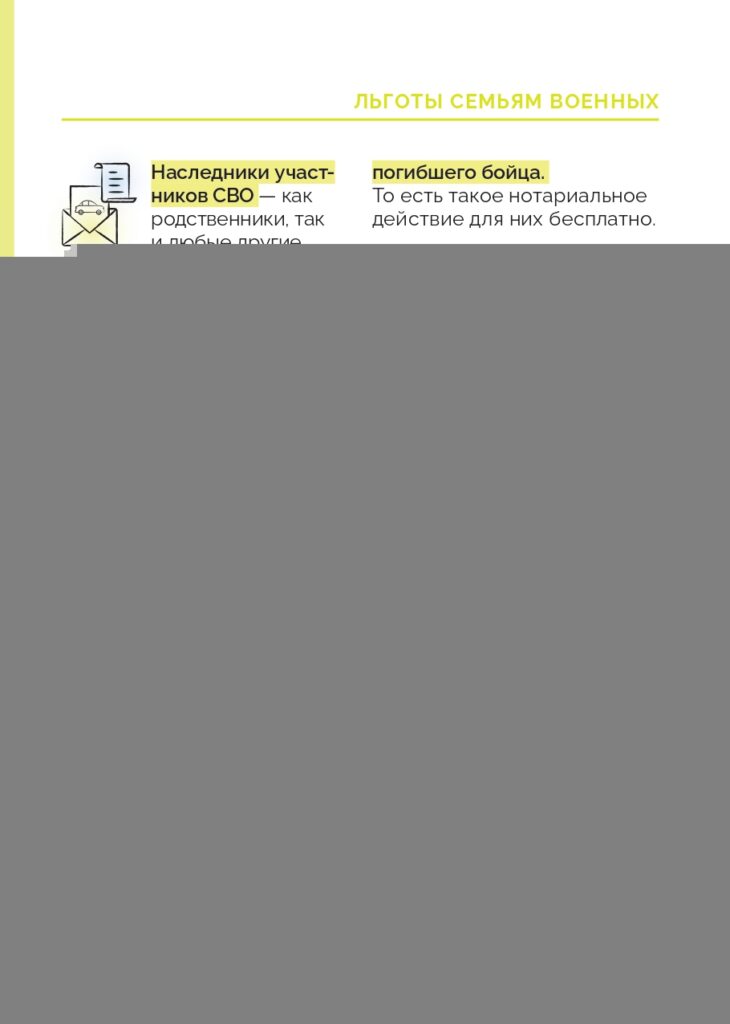 Подробнее о льготах нотариата для участников СВО и их семей — в наглядной памятке, разработанной Федеральной нотариальной палатой.