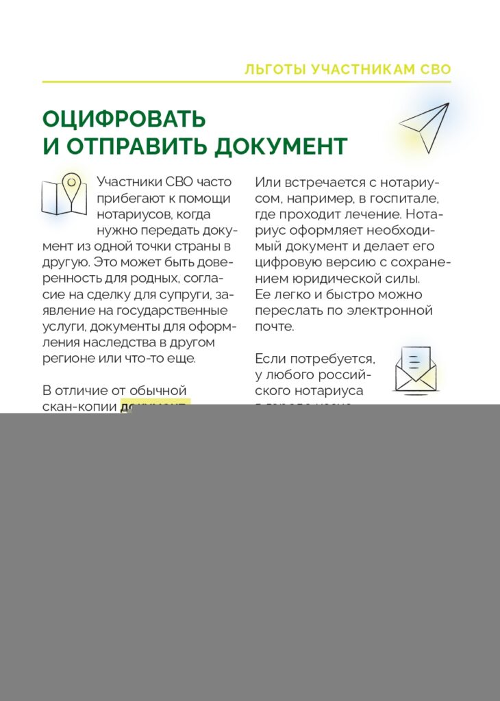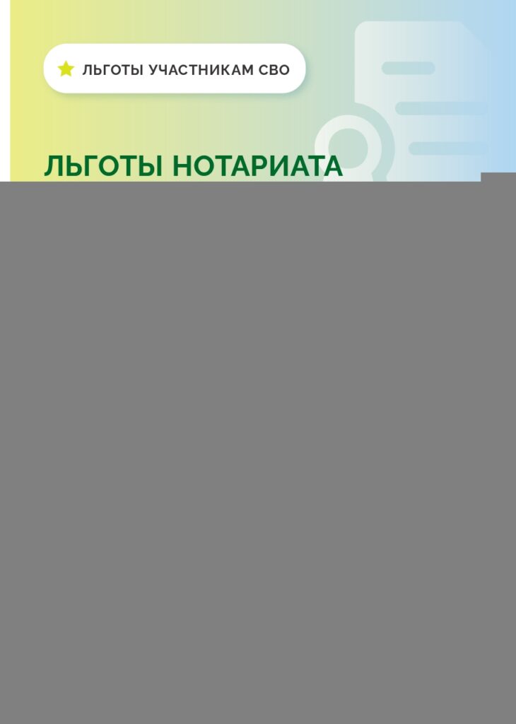 Подробнее о льготах нотариата для участников СВО и их семей — в наглядной памятке, разработанной Федеральной нотариальной палатой.