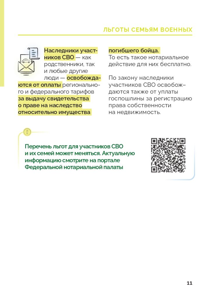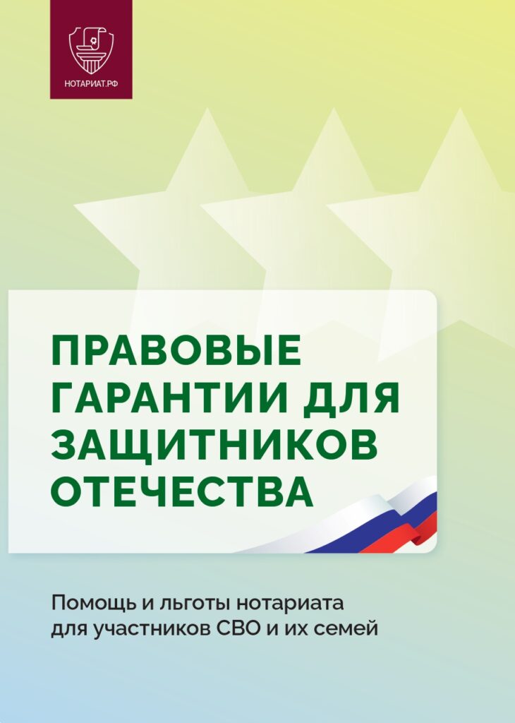 Подробнее о льготах нотариата для участников СВО и их семей — в наглядной памятке, разработанной Федеральной нотариальной палатой.