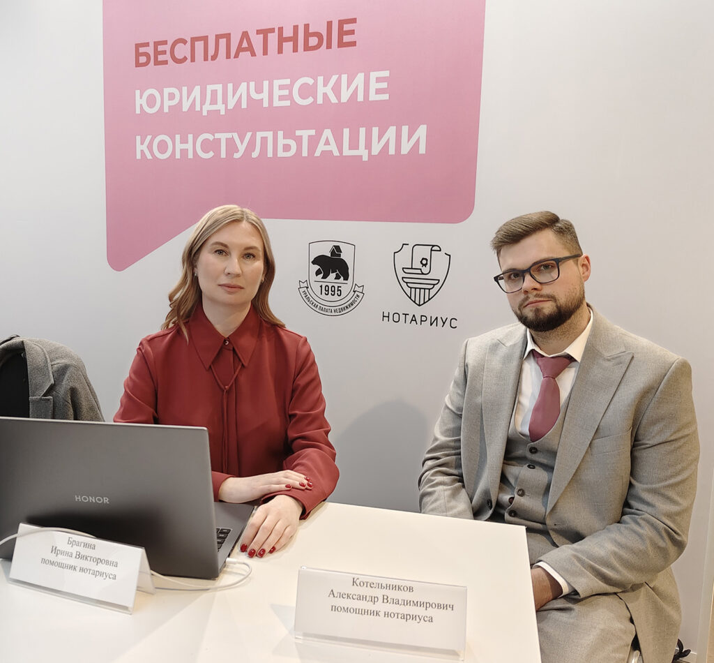 В рамках организованного палатой Консультационного пункта бесплатную юридическую помощь жителям уральской столицы оказали нотариус города Екатеринбурга Елена Пугачева, помощники нотариуса Александр Котельников и Ирина Брагина.